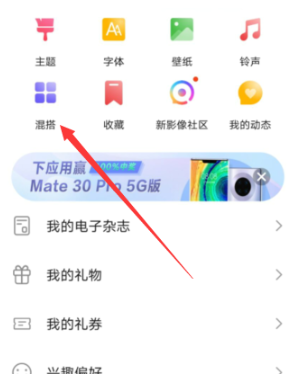 1.在手机中找到系统随附的[主题]软件,将其打开并选择[混搭].
