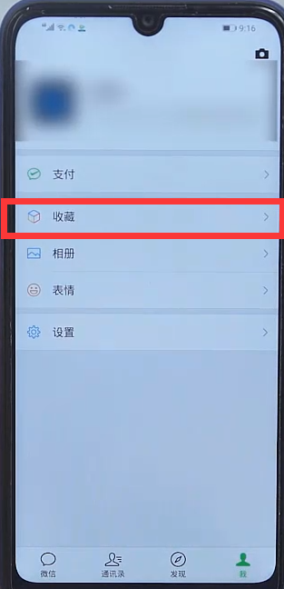 1、打开微信,点击我,再选择图中的收藏。