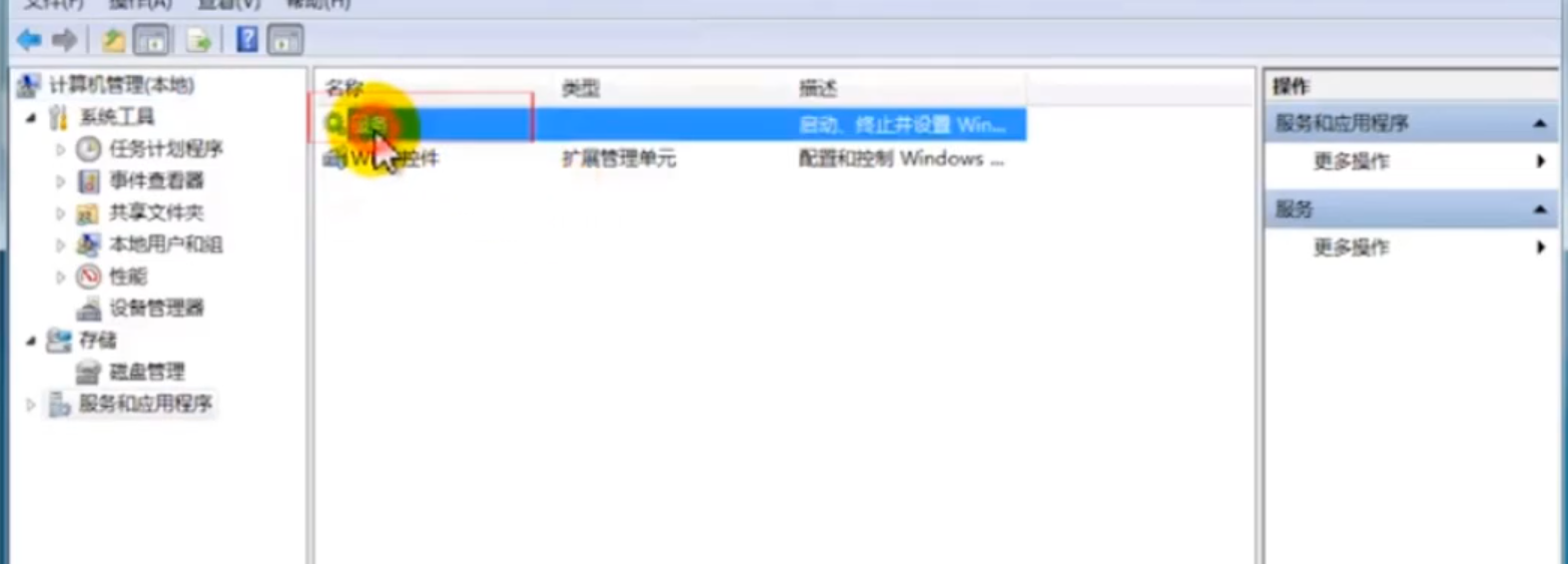4.然后打开计算机,进入管理选项,找到服务和应用程序。
