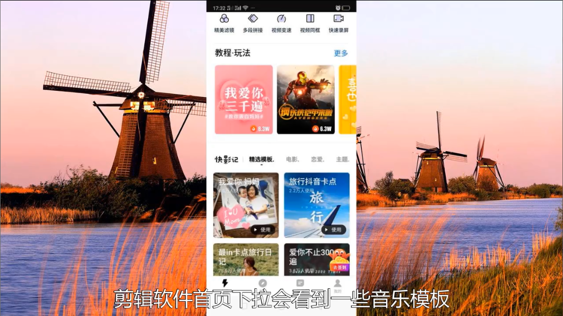 4、剪辑软件首页下拉也可以看到很多的模板。
