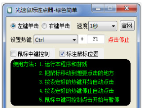 该界面非常简单,选择鼠标并单击按钮,将鼠标移至需要单击的位置,然后按F1键每秒可启动计算机1000次,但它仅支持左键单击
