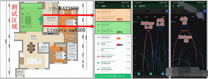 为了使每个人都能准确体验小米AX3600路由器的信号性能,主机选择了linksys ea8300作为控制组。 ea8300是3年前的wifi5产品。现在新价格在600元左右。以相同的价格进行比较是相对合理的(PS:所有者手中的其他wifi6路由器都是2000英镑以上的价格,因此不容易直接进行比较。公平)。将两个路由器放置在同一位置,以进行整个房屋的信号质量测试。 (PS:测试设备为Mi 9手机)