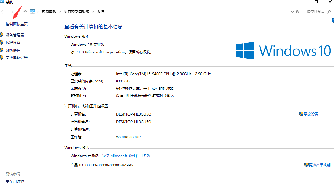 1、首先右击此电脑选择属性,进入后点击左上角的控制面板主页。