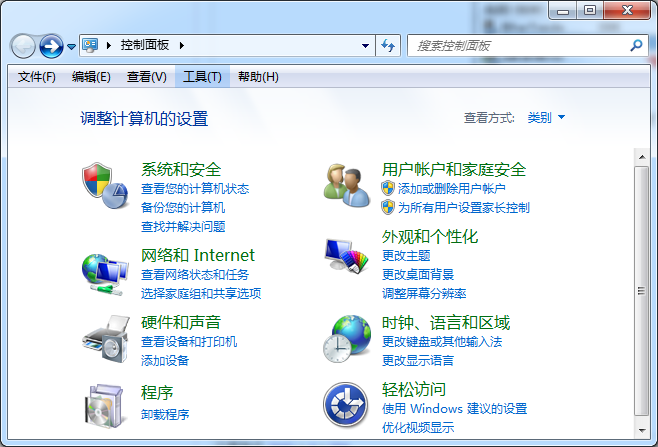 4、上面步骤完成后,打开“控制面板”,选择“用户账户和家庭安全”。