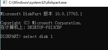 6、接着输入select disk 1按下u盘的分区分盘,敲击回车,在输入clean敲击回车,回到磁盘管理。