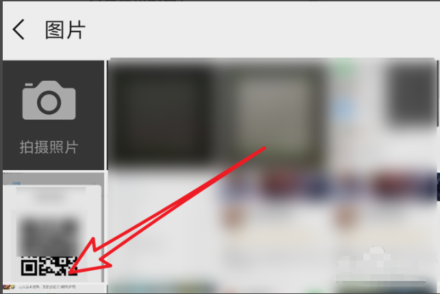 5、之后点击下方的从相册选取二维码,弹出相册中,点击选择刚才的图片即可。