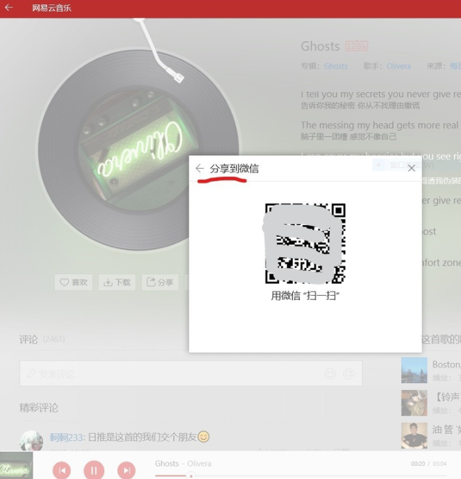 2、如果是手机版的话,可以在app里找到想要分享的歌曲,点击右上角的分享按钮,选择分享微信好友或者朋友圈里。