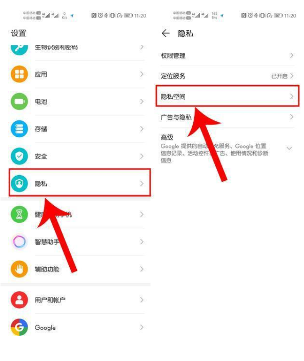 1、首先打开【设置】,接着选择【隐私】进入,然后进入【隐私空间】功能。