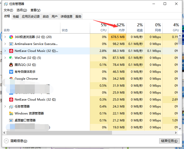 3、然后右击不需要运行的程序,选择【结束任务】即可。