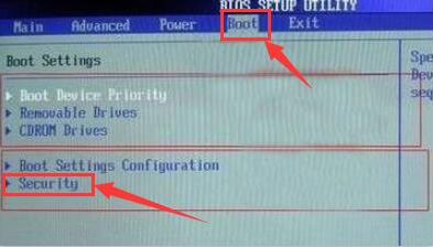 1、启动电脑,按del键进入bios界面(按相应电脑品牌快捷键进入),然后选择“boot→security”,如图所示: