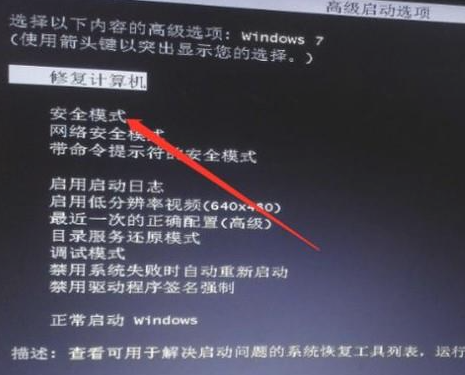 4、你也可以在“高级选项”菜单出来后选择“安全模式”,然后回车,再点击“退出”,再点击重启电脑就可以了。