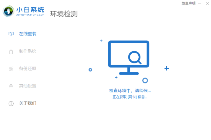 2、然后关闭杀毒软件,打开小白一键重装系统,小白会对电脑环境进行检查。