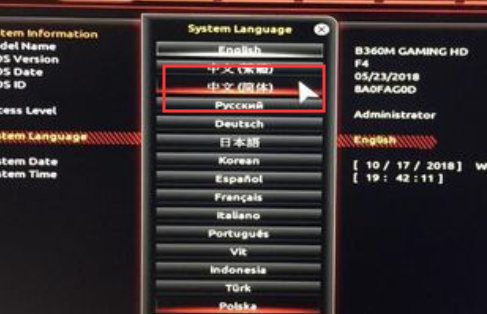 1、进入到BIOS设置中如果你不知道如何设置或找不到你想要的设置,那么可以将BIOS的语音设置为中文,这样就不会有障碍了。
