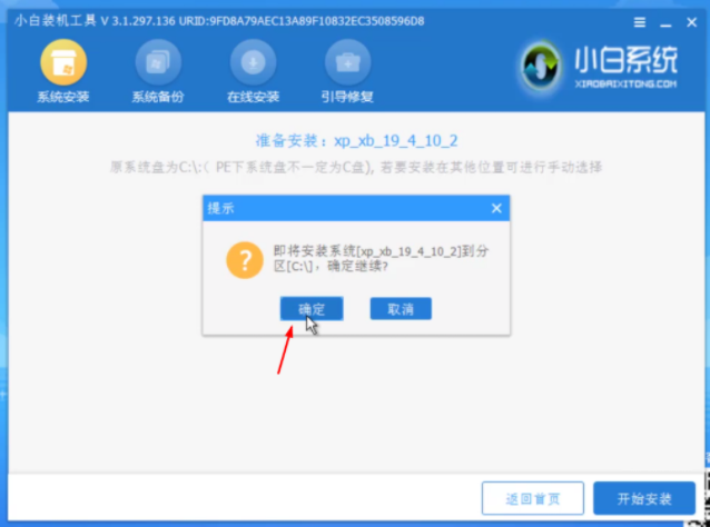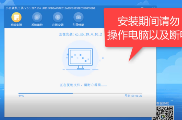 10、进入到PE系统里面,在小白装机工具界面 选择XP系统,点击 安装;