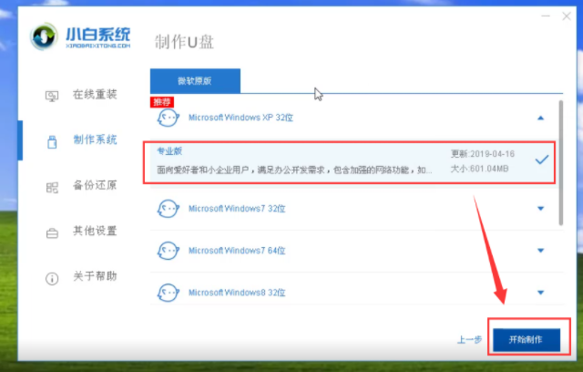 3、点击制作系统的选项,然后出现制作U盘的界面,我们点击 开始制作;