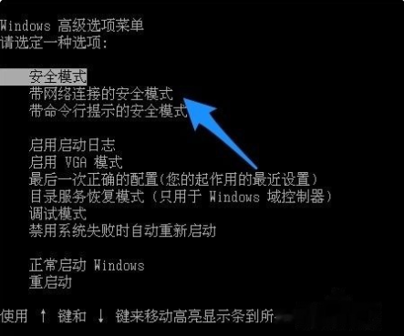 2、在系统启动选项菜单出来以后,选择进入安全模式。如果能够正常进入安全模式的话,我们可以在安全模式下,删除黑屏以前安装的软件或是驱动。随后再重新启动机器,看笔记本电脑是否可以解决黑屏的问题。也可以选择进入最后一次正确的配置,进行修复。