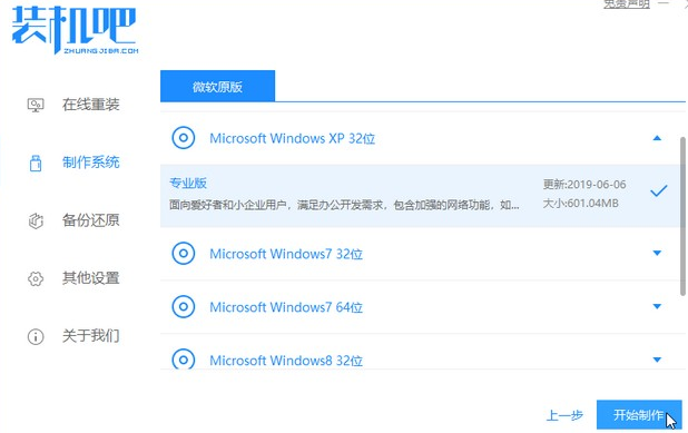 1.插入u盘,打开软件,点击制作系统,点击开始制作。