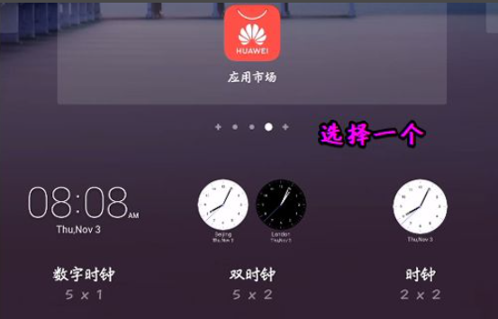4、点开时钟小工具后,会看到三种,可以任意选择一个点击。