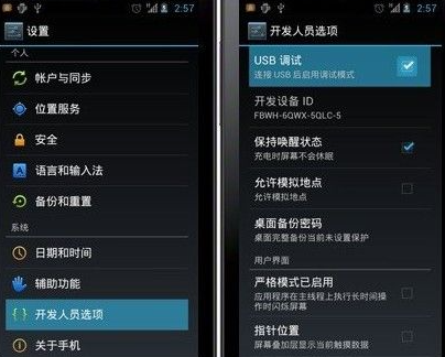 2、启智能手机USB调试模式。如果手机是安卓的手机的话,请进入手机设置--应用程序--开发,在里面勾选上USB调试模式即可。