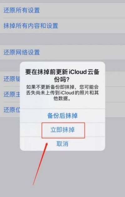 6、最后点击立即抹掉,这样就可以解决提示数据传输已取消的问题了。