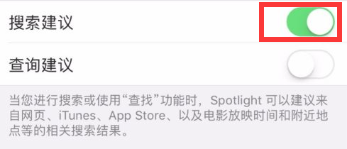 4、找到苹果手机Spotlight搜索中的查询建议。