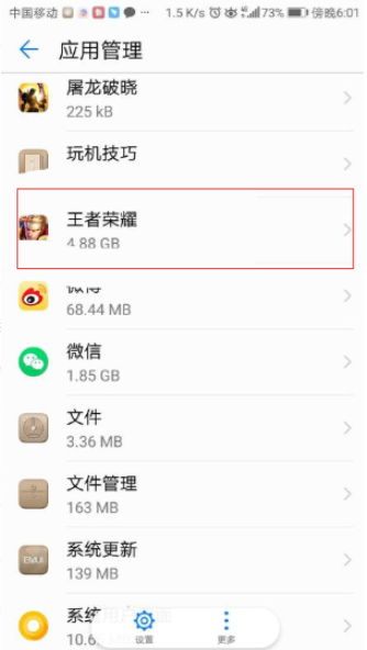 4、之后进入到“应用管理页面”以后,选择【王者荣耀】点击进去。