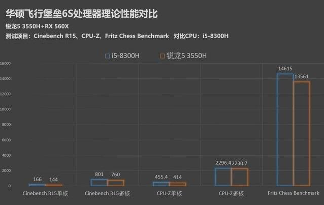 对飙酷睿u5 8300H,R5-3550H和i5 8300H跑分相近,两者差距并不大。R5 3550H相比i5-8300H,CPU性能相对弱一些,多核弱5%,而单核弱10%左右