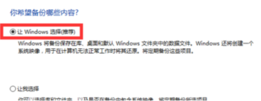 6、在“备份的内容”选择界面,默认选择(“请Windows选择(推荐)”)项,点击“下一步”。