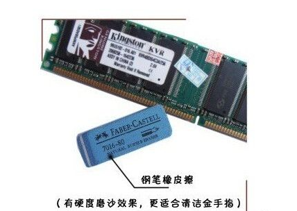 4、然后用橡皮擦清洁一下内存条的金手指。