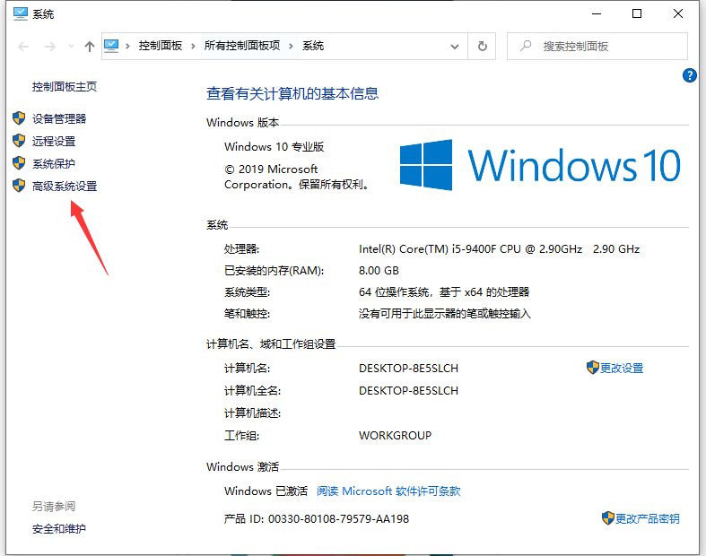 2、在打开的Windows系统属性窗口中,点击左侧边栏的“高级系统设置”菜单项。
