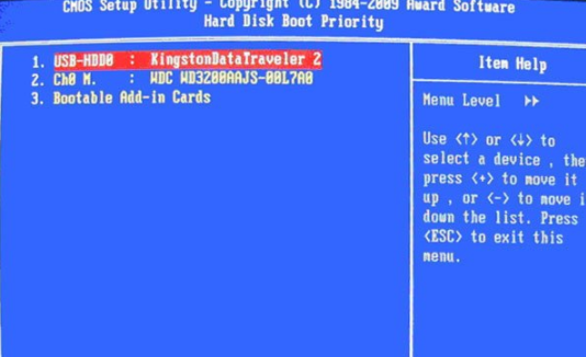3、我们选择“Hard Disk Boot Priority”选项之后,然后ENTER进入,默认情况下是优先以硬盘启动的,然后我们通过按键盘的“+”和“-”进行移动,将USB选项移到最上面,即使用USB作为第一启动盘