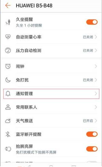2、进入B5手环管理页面后,找到“通知管理”并点击进入。