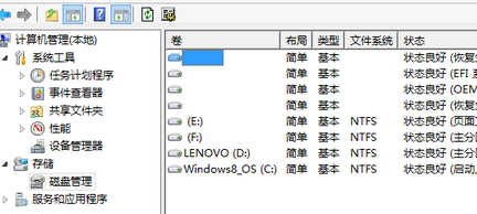 2.在弹出的界面左侧选择,存储,磁盘管理。