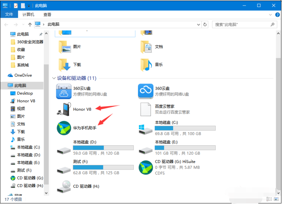 3、下面一个华为手机助手图标相当于一张光盘,双击后可直接运行,在你的电脑上安装华为手机助手,安装后就可以直接连接手机了,在手机助手中也可以对文件进行操作,而且分类出了信息、图片、视频、应用等信息,还可以在手机助手中卸载和安装手机应用。