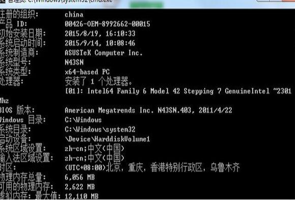 2、这时候会跳出一个对话框,在 C:\Users\Administrator> 后面输入“systeminfo”,然后按回车。