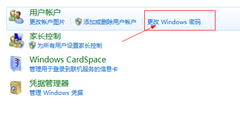 3、如上图所看到的用户帐户设置界面,之后,在用户账户中选择“更改Windows密码”选项。