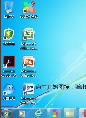 1、打开电脑,点击电脑桌面左下角的开始图标,弹出一页面。