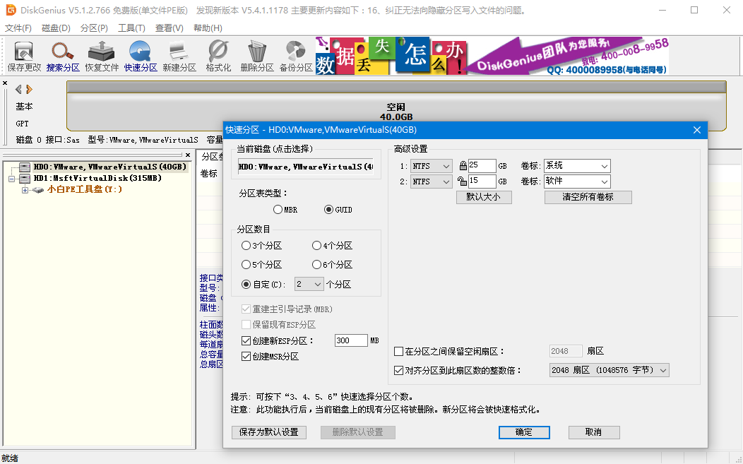 1、如果您刚购买的电脑硬盘直接连接到电脑后发现没有识别到或者不显示硬盘分区,这种有可能是因为电脑硬盘未分区导致的,您可以下载个 DiskGenius 分区工具,检查硬盘是否存在,分区是否处于未分区状态,如果有,您可以对电脑硬盘执行快速分区即可。
