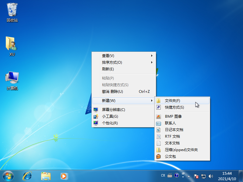 1、对着桌面或者其它文件夹内右键,然后选择新建,在这里可以选择文件夹,这样我们就可以很轻松的创建文件夹啦。