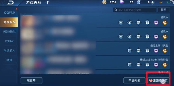 3、点击右下角的【亲密度关系】。