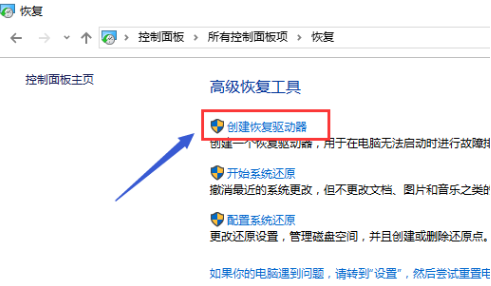 5、将U盘插入电脑,选择“创建恢复驱动器”。