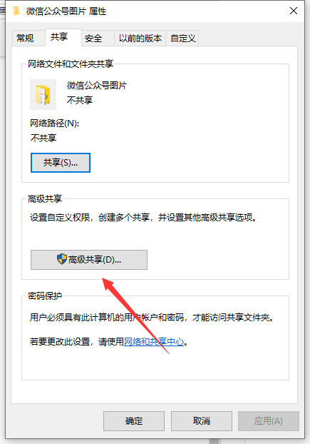 3、点击“高级共享”。