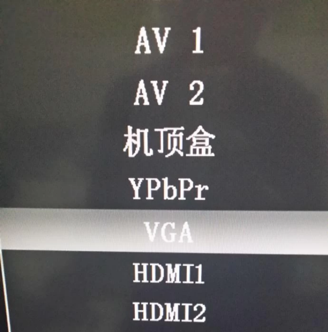 3、会看到电视上出现一个菜单,把信号源选在在“HDMI”上(如果用VGA线连接就选VGA)。