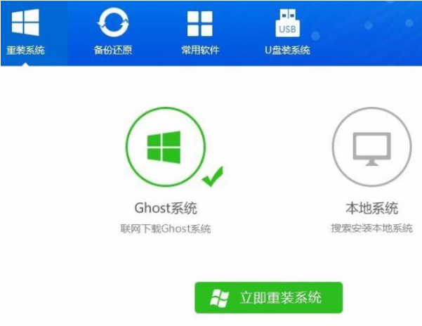 1、退出杀毒软件,打开好装机一键重装系统软件,选择ghost系统,如果下载了系统镜像就选择本地系统,然后点击立即重装系统