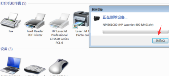 3、选择经常提示被挂起的打印机设备,右键单击选择删除设备。