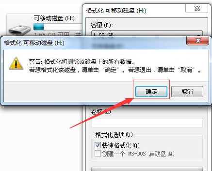 4、进行格式化u盘时会进行确认是否要进行格式化u盘的内容,如果不进行格式化的,直接点击取消即可。