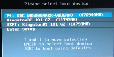 1、在其他电脑上制作uefi pe启动盘之后,在忘记密码的win10电脑上插入U盘,启动电脑之后,不停按F12或F11或Esc或F7等快捷键调出启动菜单,需根据不同品牌电脑选择,然后方向键选择识别到的U盘,选择uefi开头的项,按回车进入。