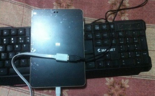 1、使用 Type-C 转 USB 转接头把小米平板 USB 键盘连接起来。
