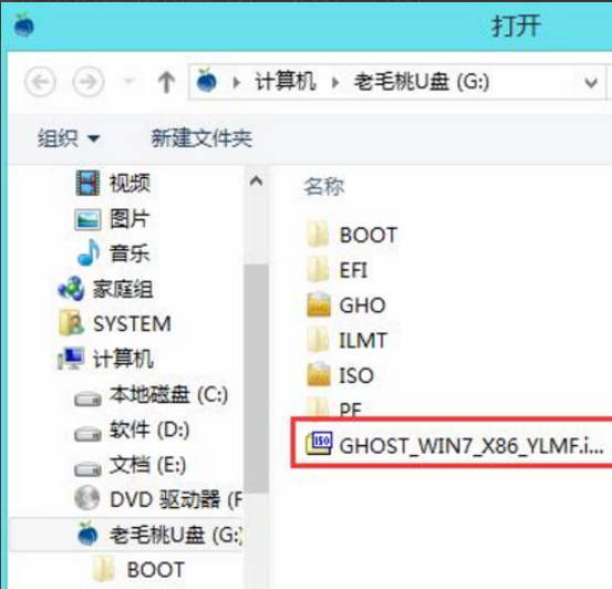 3、接着找到并选中u盘启动盘中的win7系统iso镜像文件,点击“打开”即可。
