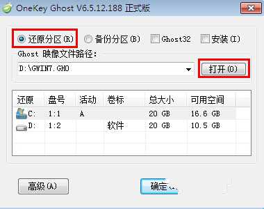 点击打开,找到gho文件的存放位置。(如D:\gwin7.gho)